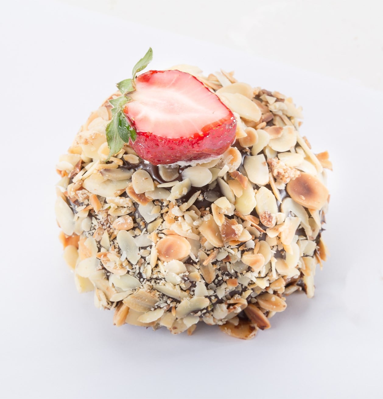 İçi Özel Kremalı, Frambuaz Çİlek Ve Muzlu Dışı Çikolatalı Sos zerine File Badem